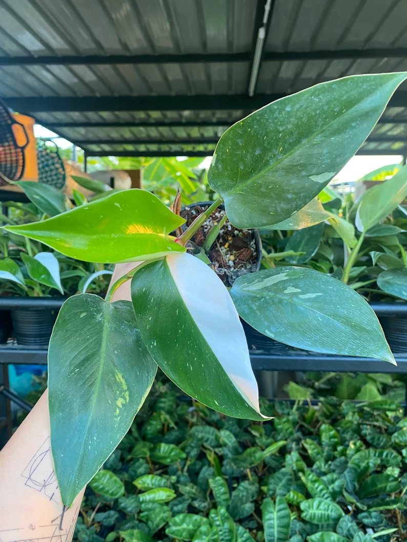 Philodendron ‘White Princess’ is very similar to another white variegated Philodendron ‘White Knight’. While White Knight has brown-red petioles, White princess petioles are green, but with pink edges.