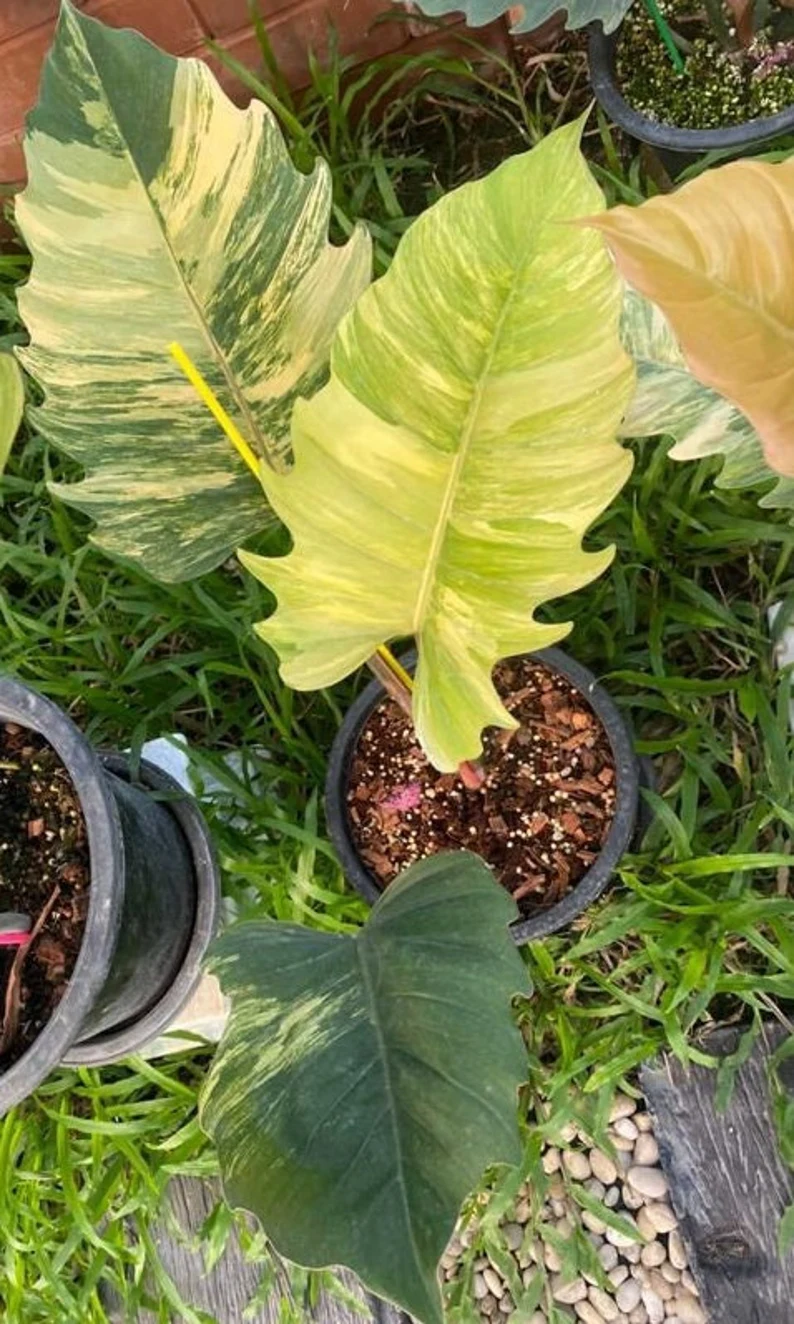 7.Some plants might have some little spots or a little yellowish edge due to our hot temps or sun exposure but newer, younger leaves come out with beautiful white variegation then they turn creamer tone as they mature or get a bit darker if exposed to lots of sun or warmer temps.We do not take responsibility for yellowish or fallen leaves,please understand.