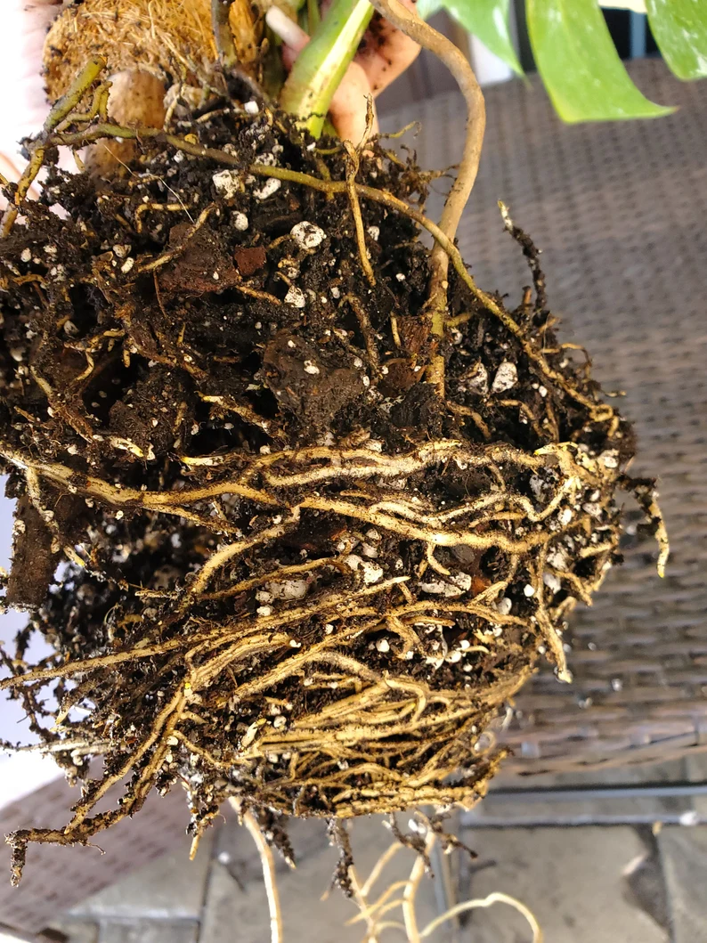 These plants grow slowly. Thus, only repot this Monstera after 2 to 3 years or if it outgrows the current pot or is rootbound. You will see roots growing from drainage holes when rootbound.