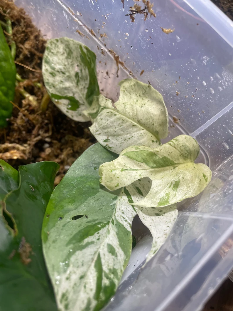 This is the rarest form of E. pinnatum. This species is a vine which grows very large foliage once it establishes growth on a pole or tree for support. The marble variegation is very rare.
