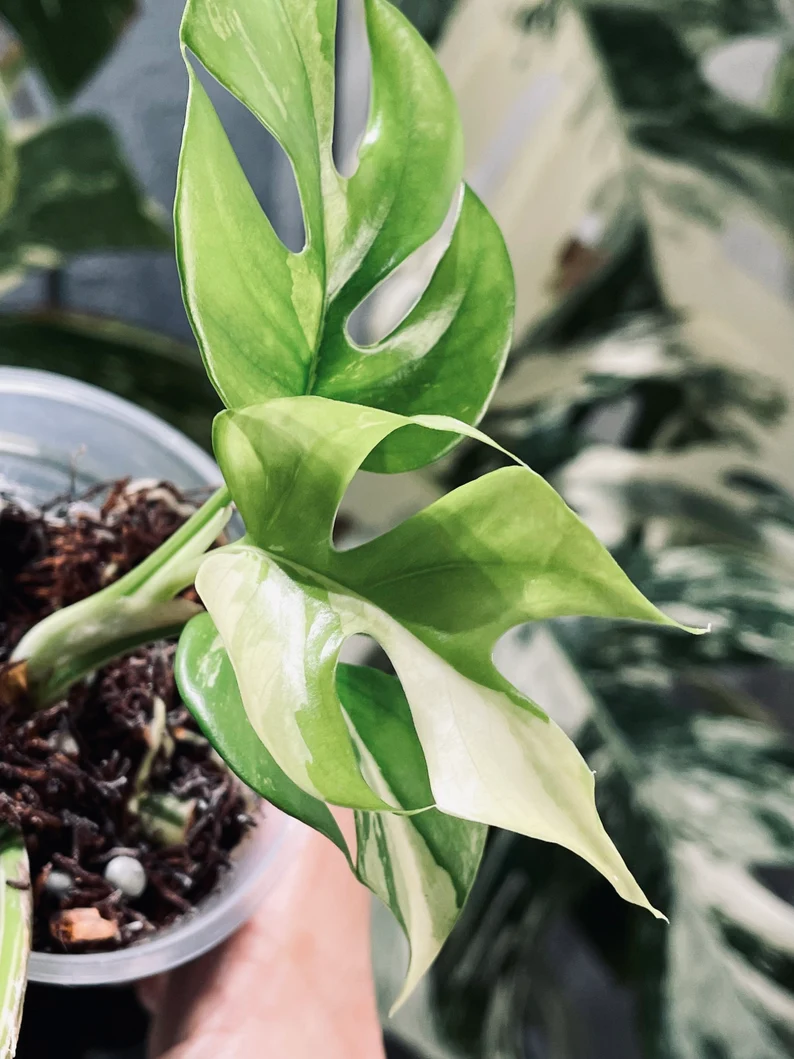 Variegated Rhaphidophora tetrasperma price – $ 400+ for small plants, $ 1000+ for larger ones. Variegated Rhaphidophora tetrasperma care instructions: Keep at 65-80 degrees Fahrenheit; water only when soil feels dry;